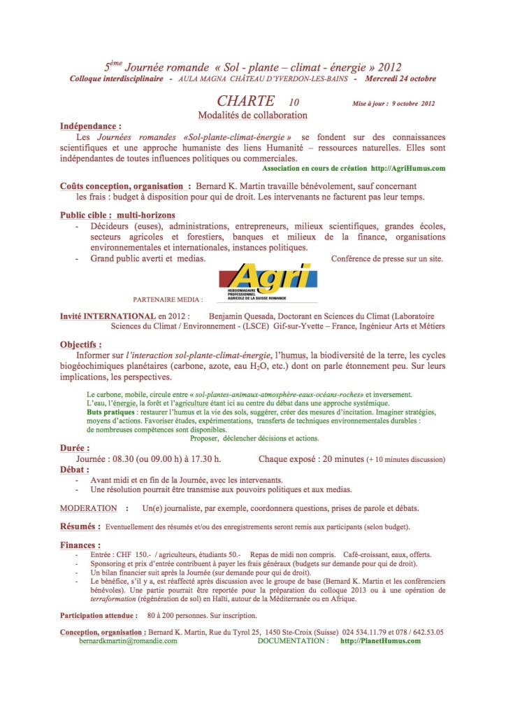 AGRICULTURE – Ressources alimentaires, eau, climat, énergie, exodes – migrations. Appliquons les connaissances en sciences du sol. Car nous avons désertifié la moitié des terres fertiles du Globe depuis 10'000 ans. PHOTOSYNTHESE VEGETALE et HUMUS de la terre se situent au coeur des solutions. D'immenses régions sahariennes, du Moyen-Orient et méditerranéennes étaient vertes auparavant. Solutions : régénérer l'humus et la biodiversité des sols, reforester. C'est possible, l'expérience le montre…